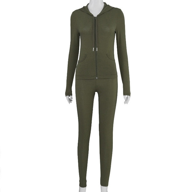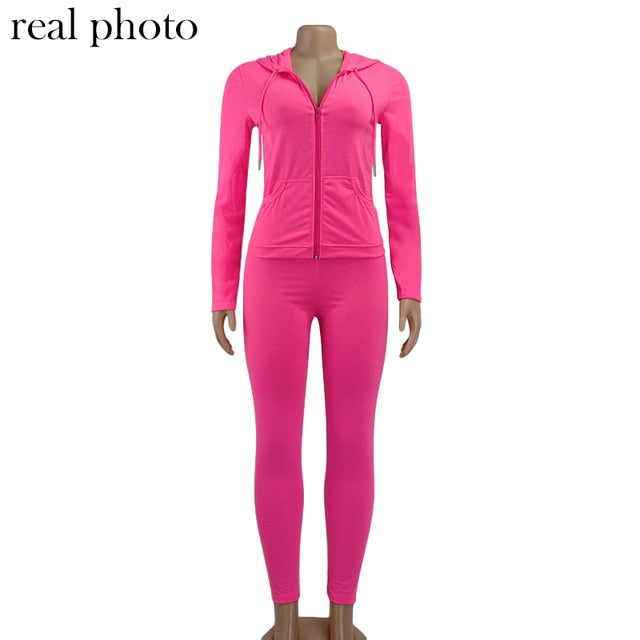 Model Number: Casual Sporty Hooded Zipper Women Matching Set